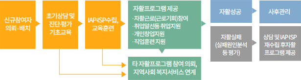 자활근로 참여의뢰자에 대한 자활근로 입문과정 교육 및 사업단 실습과 함께 개인별 맞춤형 자활·자립계획 수립을 위한 프로그램입니다.